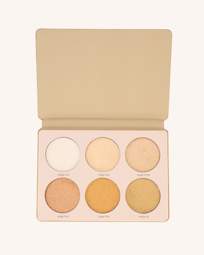 six shades of buttery soft, finely milled and super pigmented highlighter shades that deliver intense luminosity anywhere you put them